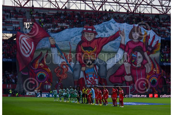 TOLUCA, ESTADO DE MÉXICO, 13OCTUBRE2022.- Los Diablos de Toluca consiguieron la victoria ante la escuadra de Santos Laguna con un marcador final 4-3 en el partido de ida de Cuartos de Final del Torneo Apertura 2022 de la Liga MX. FOTO: CRISANTA ESPINOSA AGUILAR/ CUARTOSCURO.COM