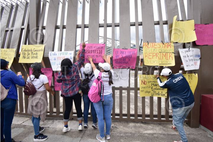 CHILPANCINGO, GUERRERO, 14OCTUBRE2022.- Integrantes del Frente Unido de Normales Públicas del Estado de Guerrero (FUNPEG) bloquearon los carriles centrales del bulevar Vicente Guerrero, las laterales de esta vialidad que conecta con la Autopista del Sol, también mantuvieron bloqueada la circulación sobre el bulevar Alejandro Cervantes Delgado a la altura del Tecnológico, y metros más adelante, a las afueras de Palacio de Gobierno. Alrededor de mil estudiantes de las ocho normales públicas iniciaron su marcha desde el monumento a Las Banderas al sur de la capital con dirección a la sede del Poder Ejecutivo. A su llegada al también conocido como la Casa del Pueblo, los estudiantes retiraron las vallas que el gobierno estatal colocó, previo al informe de la gobernadora que se llevará a cabo el día lunes. Los jóvenes portaban pancartas en las que de leía «No al recorte presupuestal de las normales», «Cumplimiento al pliego petitorio», entre otras. Los normalistas decidieron bloquear el bulevar para presionar una reunión con autoridades del Gobierno estatal encabezada por el secretario General de Gobierno, Ludwig Marcial Reynoso. El secretario de Educación Marcial Rodríguez Saldaña acudió a la protesta afuera del recinto del Poder Ejecutivo para dialogar con los estudiantes y ofrecerles una mesa de trabajo, a la que los jóvenes se negaron, solicitando la presencia del Secretario de Gobierno y de la Gobernadora. Al no tener respuesta a su demanda, se dividieron en grupos para colapsar la circulación en la zona sur de la ciudad. Durante el bloqueo hubo confrontación con algunos automovilistas que quedaron atrapados, quienes amenazaron con aventar los coches a los manifestantes. Poco antes de las 2:30 de la tarde, se instaló una mesa de negociación en la explanada del auditorio Sentimientos de la Nación entre los alumnos y en la que participó el Subsecretario de Finanzas de la SEG Alejandro Moreno Lira, el Subsecretario de Educación Media Su