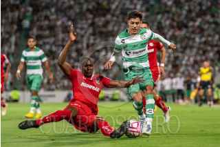 TORREÓN, COAHUILA, 16OCTUBRE2022.- El Toluca venció 2-1 a los Santos, en el partido de vuelta de los Cuartos de Final de la Liga. El marcador favoreció a los Diablos Rojos 6-4 con lo que avanzan a las semifinales. FOTO: MARCELO CUEVAS/CUARTOSCURO.COM
