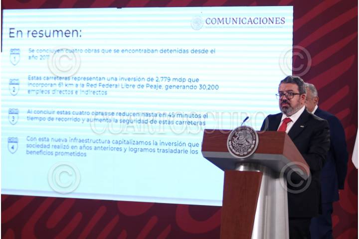CIUDAD DE MÉXICO, 17OCTUBRE2022.-Andrés Manuel López Obrador, presidente de México acompañado de Jorge Nuño Lara, subsecretario de Infraestructura de la Secretaría de Infraestructura, Comunicaciones y Transportes y Ricardo Sheffield Padilla, titular de la Procuraduría Federal del Consumidor (Profeco) durante la conferencia matutina en Palacio Nacional. FOTO: ANDREA MURCIA /CUARTOSCURO.COM