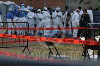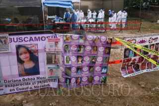 JOJUTLA, MORELOS, 17OCTUBRE2022.- Después de 5 años se reiniciaron los trabajos de exhumacion en el panteón Pedro Amaro de este municipio. Colectivos de familiares de personas desaparecidas participan en los trabajos que realiza la Fiscalia de Morelos, acompañados de personal del ejército que resguarda el sitio. En los trabajos que se realizaron en el año 2017 se exhumaron 85 cadáveres que no estaban debidamente identificados .FOTO: MARGARITO PÉREZ RETANA/ CUARTOSCURO.COM