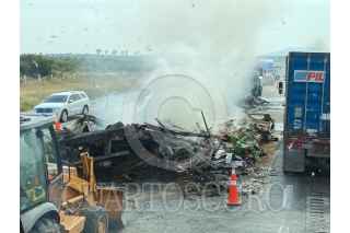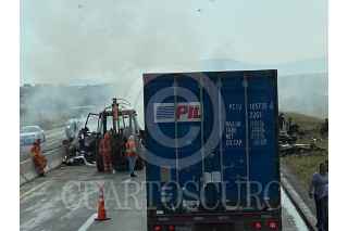 QUERÉTARO, 17OCTUBRE2022.- Un accidente en la autopista Querétaro - Irapuato, en la Carretera Palmillas-Apaceo el Grande, detuvo la circulación por más de seis horas. El accidente fue un choque contra una barrera metálica, lo que provocó la salida del camino del camión. FOTO: PEDRO VALTIERRA/CUARTOSCURO.COM