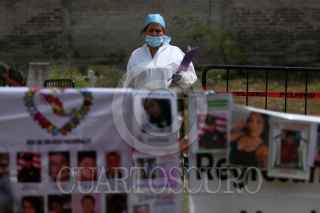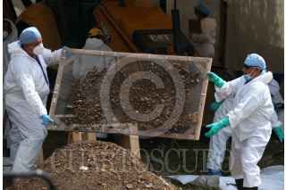 JOJUTLA, MORELOS, 17OCTUBRE2022.- Después de 5 años se reiniciaron los trabajos de exhumacion en el panteón Pedro Amaro de este municipio. Colectivos de familiares de personas desaparecidas participan en los trabajos que realiza la Fiscalia de Morelos, acompañados de personal del ejército que resguarda el sitio. En los trabajos que se realizaron en el año 2017 se exhumaron 85 cadáveres que no estaban debidamente identificados .FOTO: MARGARITO PÉREZ RETANA/ CUARTOSCURO.COM