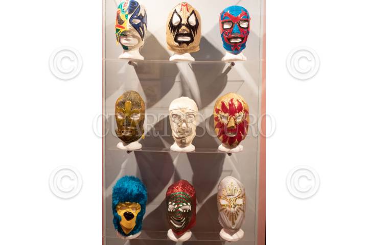 CIUDAD DE MÉXICO, 17OCTUBRE2022.- Se presentó la exposición "Blue Demon. Ídolo mexicano sin límite de tiempo", en el Museo del Estanquillo. En la misma se recoge todo que coleccionó Carlos Monsiváis con el tema de la lucha libre y del Demonio Azul. En dos salas se da un recorrido por su carrera en los encordados, en el cine, y de su historia familiar. FOTO: MOISÉS PABLO/CUARTOSCURO.COM