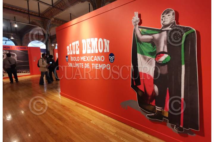 CIUDAD DE MÉXICO, 17OCTUBRE2022.- Se presentó la exposición "Blue Demon. Ídolo mexicano sin límite de tiempo", en el Museo del Estanquillo. En la misma se recoge todo que coleccionó Carlos Monsiváis con el tema de la lucha libre y del Demonio Azul. En dos salas se da un recorrido por su carrera en los encordados, en el cine, y de su historia familiar. FOTO: MOISÉS PABLO/CUARTOSCURO.COM