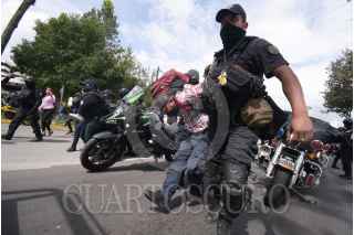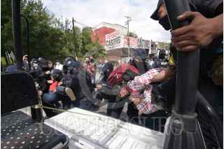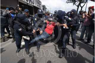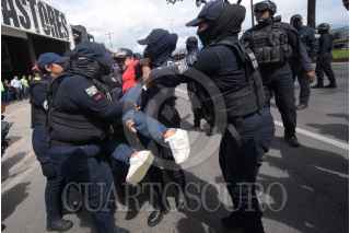 XALAPA, VERACRUZ, 18OCTUBRE2022.- Dos horas después de que vecinos de la colonia Insurgentes cerraron el bulevar Xalapa-Banderilla, elementos de seguridad hicieron uso de la fuerza para disolver la manifestación. Los inconformes exigían la pavimentación de calles y obras de drenaje. Los policías arrestaron a Arely Hernández, así como a un hombre, a quienes se llevaron cargando en una patrulla para remitirlos al cuartel “Heriberto Jara Corona”. FOTO: YERANIA ROLÓN/CUARTOSCURO.COM