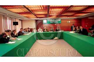 Jesús Garibay, Rosalinda López, Antonio Magallanes, Oscar Levyn y Salvador Rocha integrantes de la comisión de Hacienda y Crédito Público se reunieron por varias horas de manera privada. FOTO: Victoria Valtierra/CUARTOSCURO.COM