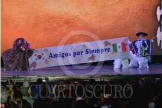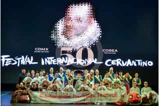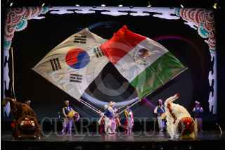 GUANAJUATO, GUANAJUATO, 19OCTUBRE2022.- K-Intangible Heritage, festival organizado por Corea del Sur se presentó en la Alhóndiga de Granaditas en el marco de las actividades del 50 Festival Internacional Cervantino (FIC). Las actuaciones fueron representadas de acuerdo al Kim Baek-bong Buchaechum (baile de abanico), Pansori (canto épico), Namsadang Nori (compañía itinerante) y Bukcheong Saja Noreum (Danza de máscaras de león de Bukcheong). FOTO: MARIO JASSO/CUARTOSCURO.COM