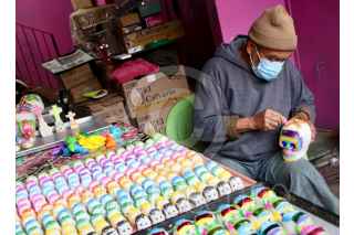 OAXACA, OAXACA, 20OCTUBRE2022.- El artesano oaxaqueño Luis Colmenares pertenece a la cuarta generación de una familia dedicada a la elaboración de calaveritas de azúcar en Oaxaca; desde el mes de marzo trabaja en la elaboración de 30 mil calaveras de diversos tamaños que empieza a decorar durante septiembre para que estén listas en la temporada de Día de Muertos. La labor artesanal que desarrolla Luis Colmenares se ha encarecido debido al aumento en el costo de la materia prima, sin embargo el artesano dijo que seguirá trabajando para que esta tradición siga viva. FOTO: CAROLINA JIMÉNEZ/CUARTOSCURO.COM