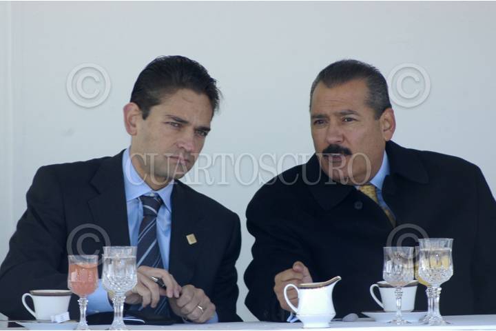 HUEHUETOCA, ESTADO DE MÉXICO 19FEBRERO2007.- El presidente Felipe Calderón Hinojosa, es acompañado del secretario de defensa nacional Guillermo Galvan Galvandurante el desayuno conmemorativo al ¨Día del Ejercito¨ realizado en el campo militar No. 37 . FOTO: GUILLERMO PEREA/CUARTOSCURO.COM