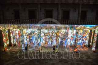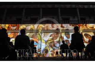GUANAJUATO, GUANAJUATO, 20OCTUBRE2022.- El espectáculo de videomapping "100 años del muralismo en México" del cineasta Diego Rivera, fue presentado esta noche al interior de la Alhóndiga de Granaditas, en el marco de las actividades del 50 Festival Internacional Cervantino (FIC). FOTO: MARIO JASSO/CUARTOSCURO.COM