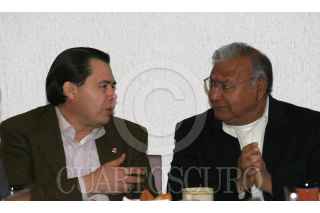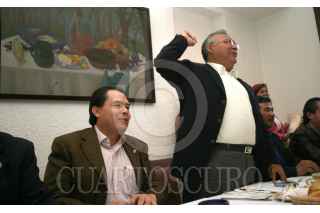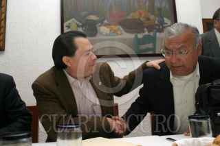 MEXICO, D.F. 19FEBRERO2007.- Rene Arce, integrante de Nueva Izquierda saluda a Agustín Rodríguez, lider del STUNAM previo a una conferencia de prensa que ofrecieron a los medios de comunicación. FOTO: NELLY SALAS/CUARTOSCURO.COM