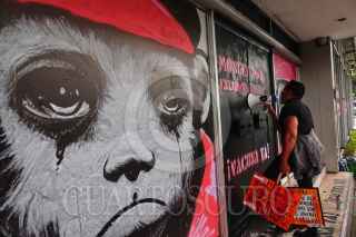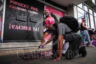 CIUDAD DE MÉXICO, 21OCTUBRE2022.- Decenas de personas protestaron frente al Centro Nacional de Programas Preventivos y Control de Enfermedades (CENAPRECE) para exigir a las autoridades de vacunas contra la Viruela del Mono, con pancartas y pintas los inconformes también cerraron la circulación sobre el Eje 4 casi esquina con Patriotismo. FOTO: ROGELIO MORALES /CUARTOSCURO.COM