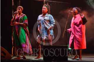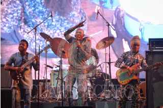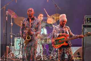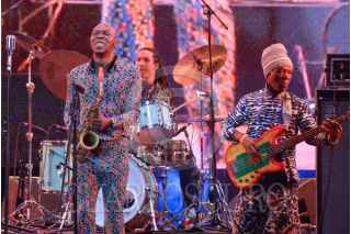 GUANAJUATO, GUANAJUATO, 21OCTUBRE2022.- Seun Kuti, cantautor nigeriano e hijo de Fela Kuti (1938-1997) precursor del género afrobeat, ofreció concierto en la Alhóndiga de Granaditas como parte del 50 Festival Internacional Cervantino (FIC). FOTO: MARIO JASSO/CUARTOSCURO.COM