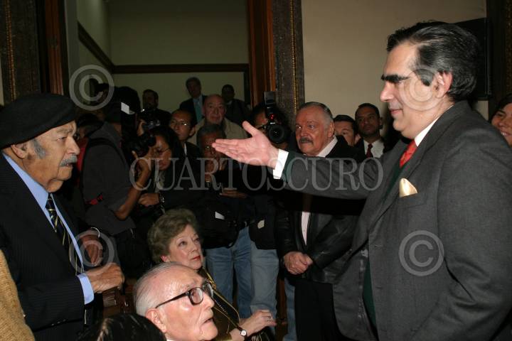 MEXICO, D.F. 19FEBRERO2007.- Alfredo Ruíz del Río saluda Jacobo Zabludowsky en el salón de cabildo, donde se se contituyó el Consejo de la Crónica. FOTO: NELLY SALAS/CUARTOSCURO.COM