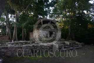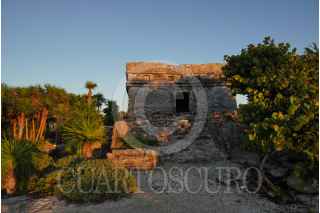 XCARET, QUINTANA ROO, 22OCTUBRE2022.- Aspectos del Templo costero durante las primeras horas del día. Esta estructura predomina en la costa oriental y es visible desde el océano, punto desde el que se puede observar la isla de Cozumel. La edificación, que se encuentra bien conservada a pesar del paso de tormentas y huracanes, sirvió como punto de referencia para los navegantes mayas. FOTO: ELIZABETH RUIZ/CUARTOSCURO.COM