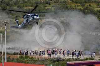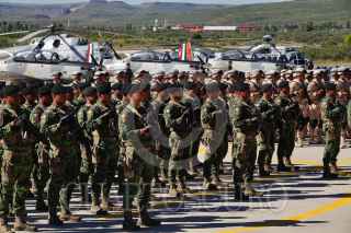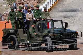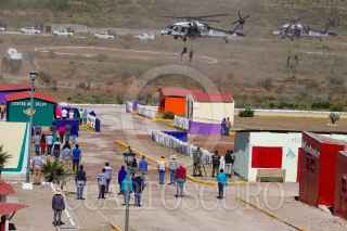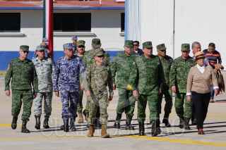 CHIHUAHUA, CHIHUAHUA, 22OCTUBRE2022.- Rosa Icela Rodríguez, titular de la Secretaría de Seguridad y Protección Ciudadana, Luis Cresencio Sandoval González, secretario de la Defensa Nacional, Luis Rodríguez Bucio, titular de la Guardia Nacional Almirante José Rafael Ojeda Durán, titular de Marina, supervisaron los ejercicios finales de seguridad pública, seguridad interior y defensa nacional en donde participaron elementos de la Secretaría de Defensa Nacional, Guardia Nacional y Fuerza aérea llevaron acabo en el Centro de Adiestramiento Campo Militar 42-A, Santa Gertrudis. FOTO: ROGELIO MORALES /CUARTOSCURO.COM