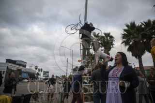 TIJUANA BAJA CALIFORNIA, 22OCTUBRE2022.- Familiares y amigos colocan una una bicicleta en memoria de Diana, académica que fue atropellada por un camión de carga en Playas de Tijuana.Los asistentes exigieron que el gobierno tome medidas para que los ciclistas tengan condiciones para circular en una ciudad donde sus vialidades están enfocadas solo para vehículos, El pasado 13 de octubre, Diana Carolina Peláez Rodríguez, estudiante del doctorado en Estudios de Migración en el Colegio de la Frontera Norte (Colef), murio atropellada por un camión de carga cuando la academia se transportaba en su bicicleta. FOTO: OMAR MARTÍNEZ/ CUARTOSCURO.COM