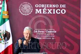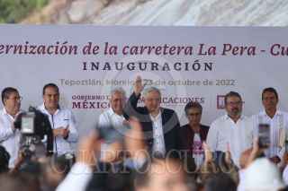 TEPOZTLAN, MORELOS, 23OCTUBRE2022.- Inauguración de la modernización de la autopista La Pera- Cuautla, por el presidente de la república, Andrés Manuel López Obrador, acompañado del gobernador, Cuauhtémoc Blanco. Esta obra inició en el 2011 y provocó el rechazo de una parte de la población por el daño ecológico que causo al medio ambiente al ser ampliada a cuatro carriles. FOTO: MARGARITO PÉREZ RETANA / CUARTOSCURO. COM
