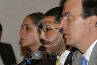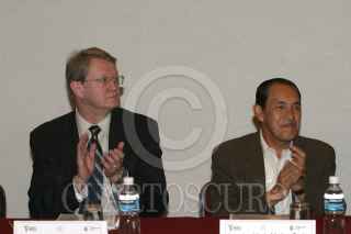 MEXICO, D.F. 19FEBRERO2007.- Marti Batres, secretario de Desarrollo Social y Marcelo Ebrard, jefe de gobierno de la ciudad de México durante la ceremonia de la Comisión de Desarrollo Social. FOTO: NELLY SALAS/CUARTOSCURO.COM