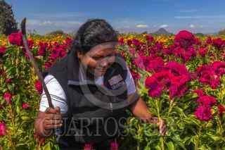 TLAXCOAPAN, HIDALGO, 23OCTUBRE2022.- Productores de la comunidad de Doxey y del municipio de Tlaxcoapan iniciaron el corte de flores para los festejos del Día de Muertos. Entre las flores cosechadas está el cempasúchil, terciopelo, nube y crisálida. FOTO: JUAN PABLO ZAMORA/CUARTOSCURO.COM