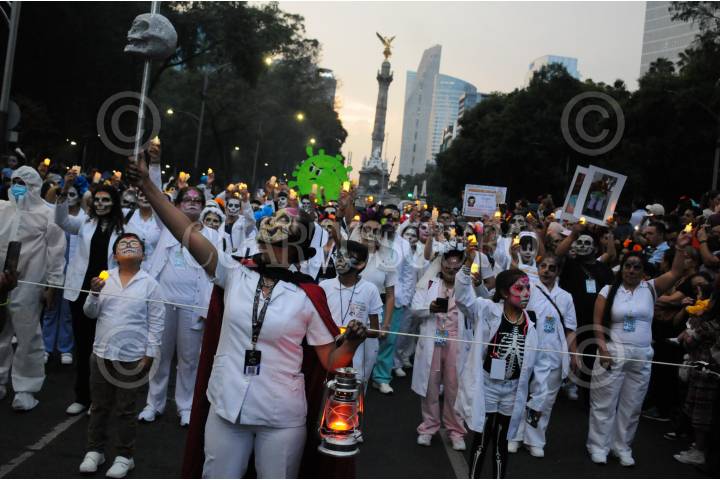 CIUDAD DE MÉXICO, 23OCTUBRE2022.- Miles de personas participaron en la Mega Procesión de Catrinas 2022 la cual partió del Ángel de la Independencia rumbo al Zócalo. FOTO: DANIEL AUGUSTO/CUARTOSCURO.COM