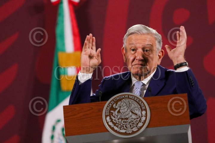 CIUDAD DE MÉXICO, 24OCTUBRE2022.- Andrés Manuel López Obrador, Presidente de México; Ricardo Sheffield Padilla, titular de Profeco, y Jesús Ramírez Cuevas, Vocero de la Presidencia, durante la mañanera, en la que se habló sobre la inflación en la economía del país. FOTO: MOISÉS PABLO/CUARTOSCURO.COM