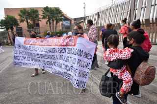 CHILPANCINGO, GUERRERO, 24OCTUBRE2022.- Viudas de policías estatales que fueron asesinados en el cumplimiento de su deber y otros por complicaciones a causa del Covid-19, protestaron esta mañana afuera del recinto del Poder Ejecutivo para denunciar obstaculización en el acceso a indemnizaciones. A las 9 de mañana unas cuatro personas llegaron al Palacio de Gobierno, entendieron una lona y se manifestaron en las escalinatas. Una de las viudas, quien prefirió omitir su nombre por temor a represalias, aseguró que son unas 70 familias de policías las que se encuentran en la misma situación, pues desde el año 2019 que murieron sus cónyuges no han recibido el pago del seguro de vida y la pensión. FOTO: DASSAEV TÉLLEZ ADAME/CUARTOSCURO.COM