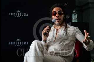 CIUDAD DE MÉXICO, 25OCTUBRE2022.- El cantante estadounidense Lenny Kravitz ofreció conferencia de prensa en la inmediaciones del hotel Four Seasons, en la alcaldía Cuauhtémoc, para continuar las actividades de presentación de su marca de Sotol “NocheLuna”. El también compositor destacó la riqueza de México, así como su cercanía con nuestro país debido a que en su infancia habitó colonias con muchos mexicanos. FOTO: GALO CAÑAS/CUARTOSCURO.COM
