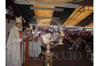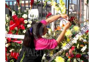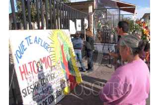 NUEVA ROSITA, COAHUILA,19FEBRERO2007.- Familiares y amigos de los 65 mineros que perecieron en el interior de la mina 8 de Pasta de Conchos asistieron a las instalaciones en donde fue instalado un altar repleto de coronas y arreglos florales en memoria de los 63 obreros que permaneces en el interior de la mina. FOTO: MANUEL RODRIGUEZ MURO/CUARTOSCURO.COM
