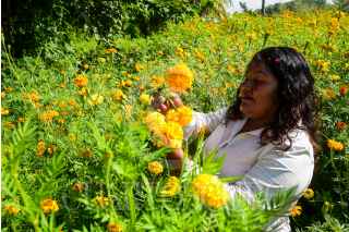 TAPACHULA, CHIAPAS, 25OCTUBRE2022.- Desde hace varios años, Araceli Juárez junto con su familia distribuyen la colorida flor de cempasúchil, en los mercados del Soconusco, como parte de las tradiciones por Día de Muertos. Es en el ejido Tinaja de Tapachula, en donde su familia tiene más de 80 años dedicándose a la siembra y comercialización de dicha flor que es característica por su olor, sabor y ser la guía de los fieles difuntos a los altares. FOTO: DAMIÁN SÁNCHEZ/CUARTOSCURO.COM