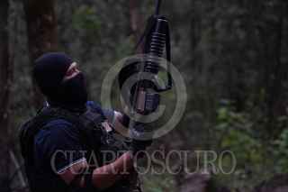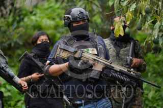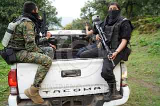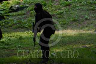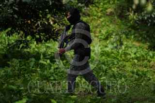 MORELIA, MICHOACÁN, 25OCTUBRE2022.- Desde hace tres años se lleva a cabo un enfrentamiento de cárteles en Michoacán. En algunas zonas del estado operativos de la Guardia Nacional, Ejército Mexicano y la nueva Policía Civil van en contra de un solo cártel. Productores agrícolas de limón y aguacate deben pagar cuotas, sin embargo, aseguran que no han denunciado por miedo a que las mismas corporaciones de seguridad están involucradas en dichos actos. En zonas del territorio michoacano ya no existen las barricadas, así como lo ha comunicado la Secretaría de Seguridad Pública, pero los grupos armados siguen disputándose los municipios para su control. En la imagen una célula del Cártel de Jalisco Nueva Generación durante una práctica en algún punto de la sierra michoacana. FOTO: CUARTOSCURO.COM
