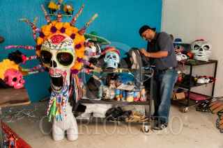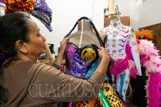 CIUDAD DE MÉXICO, 26OCTUBRE2022.- A días de celebrarse la edición 2022 del Mega Desfile por el Día de Muertos, los vestuarios, accesorios y mascarás se encuentran recibiendo los últimos detalles en los talleres de la alcaldía Venustiano Carranza. Son más de 600 vestuarios los que se emplearán, así como más de mil accesorios que acompañarán a los personajes principales y secundarios. El tema de este año será “México: el ombligo de la luna” y partirá de la puerta de Los Leones en Chapultepec hacia el Zócalo capitalino. FOTO: GALO CAÑAS/CUARTOSCURO.COM