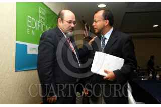 MÉXICO, D.F., 20FEBRERO2007.- Felipe Adrián Vázquez, director ejecutivo de la Comisión para la Cooperación Ambiental y Adrián Fernández, presidente del Instituto Nacional de Ecología, durante el Foro "Edificación sustentable en América del Norte: La perspectiva mexicana". FOTO: ISAAC ESQUIVEL/CUARTOSCURO.COM