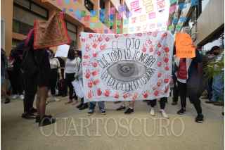 XALAPA, VERACRUZ, 26OCTUBRE2022.- Estudiantes de la Facultad de Psicología de la Universidad Veracruzana (UV) en Xalapa marcharon y se manifestaron desde su centro educativo hasta la rectoría para exigir, entre otros puntos, la destitución de la directora Lizette Teresa Figueroa Vázquez. Es la segunda movilización de alumnos de la capital del estado inconformes con la atención de casos de violencia de género al interior de la institución. FOTO: YERANIA ROLÓN/CUARTOSCURO.COM