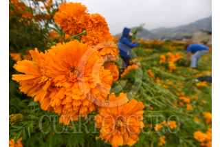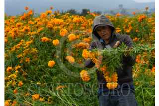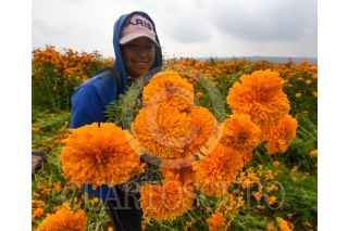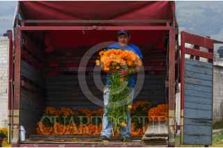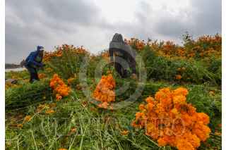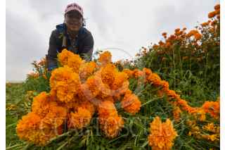 TENANGO DEL VALLE, ESTADO DE MÉXICO, 27OCTUBRE2022.- Pobladores de San Francisco Putla en Tenango del Valle iniciaron el corte de la flor de cempasúchil en esta región del Valle de Toluca, en comparación a los dos años anteriores en que su venta y producción bajó considerablemente por la pandemia por COVID-19 este año subieron su producción solo un 30 por ciento, el ramo se está vendiendo en los terrenos de cultivo alrededor de 100 pesos, en la entrada del lugar se colocan a venderla a donde llegan compradores de diversas partes de la entidad mexiquense y a su vez la llevan a otros estados. Invitan a la gente que acuda a comprar la flor para la celebración del Día de Muertos a San Francisco Putla y de esta forma los productores de la zona puedan continuar con este trabajo y la economía local se mueva. FOTO: CRISANTA ESPINOSA AGUILAR /CUARTOSCURO.COM
