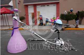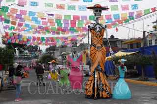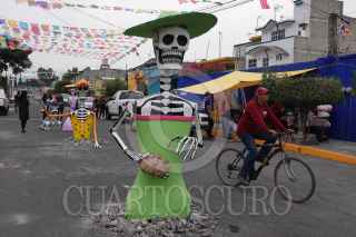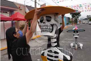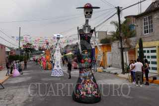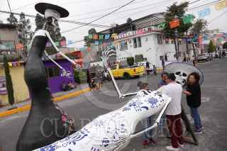 COUDAD DE MÉXICO, 27OCTUBRE2022.- El Colectivo Jaen Cartonería inauguró las siete Catrinas Monumentales, en homenaje a José Guadalupe Posada en la calle Francisco Santiago Borraz, colonia Santa Cecilia, alcaldía Tláhuac. FOTO: GRACIELA LÓPEZ / CUARTOSCURO.COM