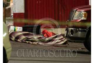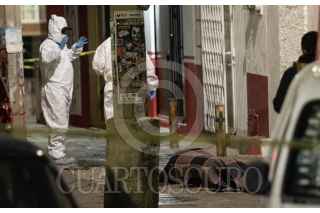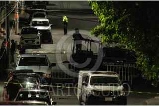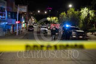 ZACATECAS, ZACATECAS, 27OCTUBRE2022.- Dos jovenes fueron asesinados después de ser perseguidos a balazos por calles de la colonia Tres Cruces. Pistoleros dieron persecución a dos jovenes entre calles hasta dar alcance y ultimarlos a balazos, quedando sin vida frente a la carnicería Victoria, sobre la avenida México. Alrededor de las 21:00 hrs se registraron las detonaciones de arma de fuego, vecinos y comerciantes de la zona, expectantes del hecho, llamaron al 911 para informar del hecho a las autoridades. Policía de proximidad llegaron al lugar en dónde fueron localizados los jóvenes mal heridos, las ambulancias nunca llegaron y los hombres murieron en el lugar. Policías de investigación llegaron para acordonar la escena del crimen, desde las calles Talabarteros, Yeseros y Grabadores, fueron localizados casquillos percutidos y marcas de sangre, lo que refiere la persecución desde calles diversas. Los cuerpos fueron trasladados al Servicio Médico Forense para la necropsia y diligencias de ley, además de ser identificados. FOTO: GENARO NATERA /CUARTOSCURO.COM