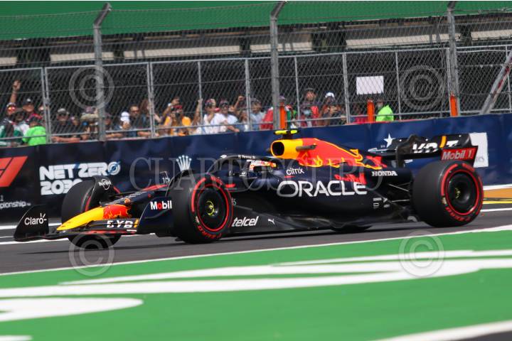 CIUDAD DE MÉXICO, 28OCTUBRE2022.- Sergio Checo Pérez logró en mejor tercer tiempo en la primera práctica de la Fórmula 1 Gran Premio de la Ciudad de México 2022, solo detrás de los pilotos del equipo Ferrari. El único incidente de esta práctica fue que el corredor de pruebas Liam Lawson tuvo que abandonar su monoplaza por un conato de incendio. FOTO: MOISÉS PABLO/CUARTOSCURO.COM