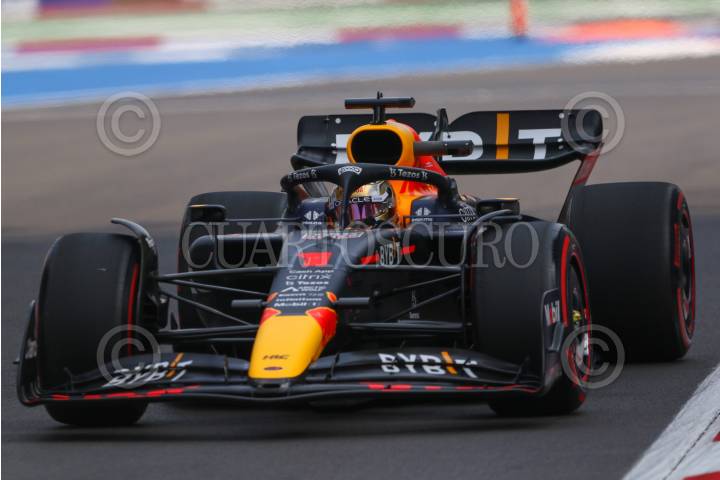 CIUDAD DE MÉXICO, 28OCTUBRE2022.- Sergio Checo Pérez logró en mejor tercer tiempo en la primera práctica de la Fórmula 1 Gran Premio de la Ciudad de México 2022, solo detrás de los pilotos del equipo Ferrari. El único incidente de esta práctica fue que el corredor de pruebas Liam Lawson tuvo que abandonar su monoplaza por un conato de incendio. FOTO: MOISÉS PABLO/CUARTOSCURO.COM