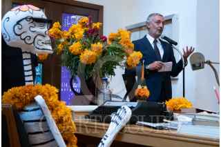 CIUDAD DE MÉXICO, 28OCTUBRE2022.- El embajador de Italia en México Luigi De Chiara en compañía de la periodista y activista Marcela Turati encabezaron la inauguración de la ofrenda dedicada a las y los periodistas asesinados en México, en el Instituto Italiano de Cultura de la alcaldía Coyoacán. Expresaron su preocupación por la situación critica que viven las y los comunicadores a lo largo del país y la importancia de su labor. Asimismo, establecieron que debe existir un mecanismo de respuesta inmediata que atienda y continúe las investigaciones que trabajaban. FOTO: GALO CAÑAS/CUARTOSCURO.COM