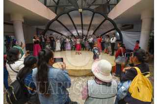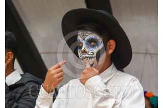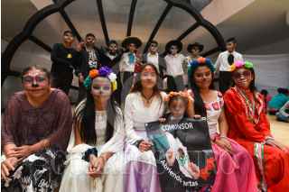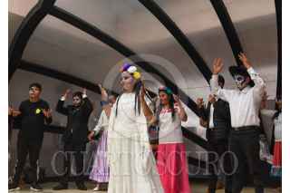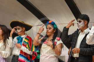 TOLUCA, ESTADO DE MÉXICO, 28OCTUBRE2022.- Integrantes de COMUNSOR Comunidad Sorda Abriendo Puertas, compuesta por padres de familia preocupados por la inclusión de sus hijos con discapacidad auditiva se han unido para fomentar la lengua de señas y la inclusión, este viernes se presentaron en la Concha Acústica de Toluca y otros puntos de la ciudad en donde cantaron dos canciones con señas, como una forma de disfrutar la temprana de Día de Muertos. Buscan compartir con la sociedad en general y que aprendan esta lengua y sus hijos puedan comunicarse. FOTO: CRISANTA ESPINOSA AGUILAR /CUARTOSCURO.COM