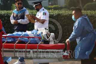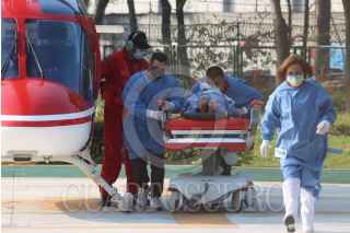 CIUDAD DE MÉXICO, 28OCTUBRE2022.- Una mujer fue trasladada al hospital Magadalena de las Salinas, en la alcaldía Gustavo A.Madero en un helicóptero relámpago tras sufrir lesiones por una volcadura de una combi de pasajeros en la carretera México-Puebla, a la altura del kilómetro 24 casi al inicio del municipio de Chalco. FOTO: ROGELIO MORALES/CUARTOSCURO.COM