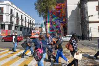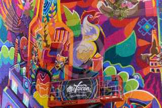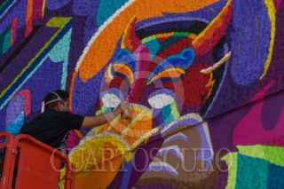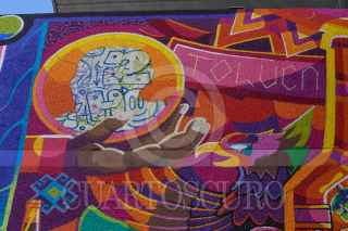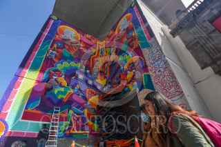 TOLUCA, ESTADO DE MÉXICO, 29OCTUBRE2022.- Integrantes de Los Metzican, un estudio de Ilustración Digital y Muralismo fundado en el año 2011 realizan un mural en el Centro Tolzú en un espacio de 400 metros cuadrados, en donde resaltan no solo la historia de este centro que albergó la Cervecería de Toluca y México, si no de la ciudad y los toluqueños, con elementos como el Cosmovitral, el Nevado de Toluca, diablitos, botellas de cerveza, motivos Otomies, Mazahuas es lo que podemos observar en este impresionante mural. Los Metzican se caracterizan por sus coloridos murales y su principal propósito es enaltecer la cultura mexicana, el folclor a través, su trabajo se puede ver en distintos puntos de la capital mexiquense, la República Mexicana y en otros países en donde han plasmado su arte, también han trabajado en colaboración con marcas de ropa y refresqueras. FOTO: CRISANTA ESPINOSA AGUILAR /CUARTOSCURO.COM