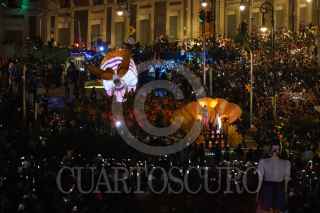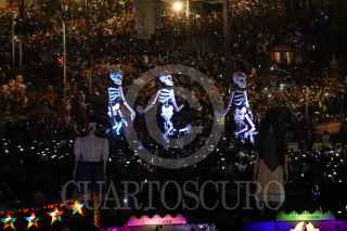 CIUDAD DE MÉXICO, 29OCTUBRE2022.- Gran desfile Día de muertos 2022 a su llegada a la plancha del zócalo capitalino. Ciudad de México. FOTO: EDGAR NEGRETE/CUARTOSCURO.COM