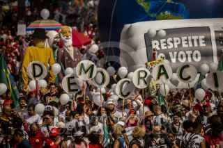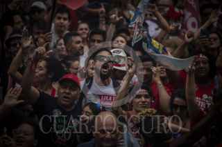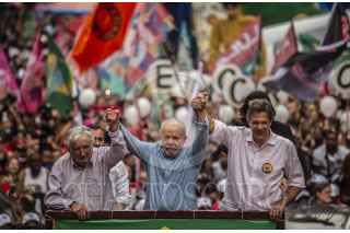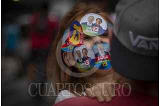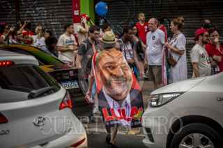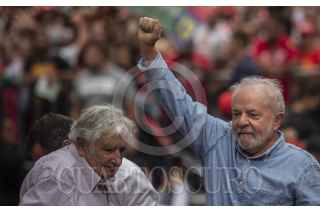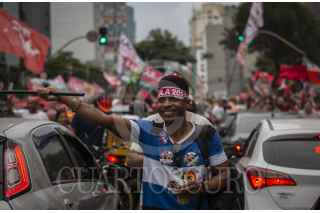 Sao Pablo , BRASIL, 29OCTUBRE2022.- Esta tarde se realizó el cierre de campaña del candidato a la presidencia de Brasil, Lula Da Silva, a lo largo de la avenida Paulista, en la ciudad de São Paulo. Al lugar acudieron miles de personas que portaban propaganda a favor de Lula y entonaron cantos y consignas a lo largo del recorrido. Las calles de São Paulo se observaron repletas de banderas con los colores del partido político PT (Partido de los Trabajadores). El candidato, quien previamente estuvo en la presidencia durante el periodo 2003-2011, se vio acompañado por el expresidente de Uruguay, Pepe Mujica, y el ex alcalde de São Paulo, Fernando Haddad. FOTO: OMAR MARTÍNEZ/ CUARTOSCURO.COM - GLOBAL EXCHANGE- TERRA 360