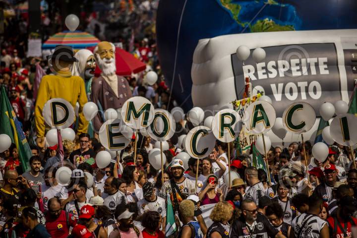 Sao Pablo , BRASIL, 29OCTUBRE2022.- Esta tarde se realizó el cierre de campaña del candidato a la presidencia de Brasil, Lula Da Silva, a lo largo de la avenida Paulista, en la ciudad de São Paulo. Al lugar acudieron miles de personas que portaban propaganda a favor de Lula y entonaron cantos y consignas a lo largo del recorrido. Las calles de São Paulo se observaron repletas de banderas con los colores del partido político PT (Partido de los Trabajadores). El candidato, quien previamente estuvo en la presidencia durante el periodo 2003-2011, se vio acompañado por el expresidente de Uruguay, Pepe Mujica, y el ex alcalde de São Paulo, Fernando Haddad. FOTO: OMAR MARTÍNEZ/ CUARTOSCURO.COM - GLOBAL EXCHANGE- TERRA 360