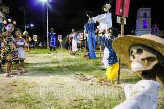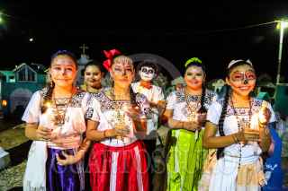 TENABO, CAMPECHE, 30OCTUBRE2022.- . En la localidad de Tinún, situada en el Municipio de Tenabo, Campeche, los lugareños vivieron la tradición del " Paseo de las Ánimas" como parte de las festividades del "Hanal-Pixan". "Las jóvenes ánimas" portaron el traje típico de Campeche, en el cierre del mes de la campechanidad y que se festeja en todo el Estado; emprendiendo su paseo partiendo del cementerio para culminar en las canchas. Los pobladores presentaron altares de muertos, y representaron el "Cielo y el Infierno" con personajes de la industria del cine y de la música en el parque de la comunidad. Adultos, jóvenes y niños disfrutaron de una velada que se ha hecho tradición en Tinun, y que retomaron tras el encierro obligatorio ante la pandemia ocasionada por el Covid 19. FOTO: MAIRA TULIA PÉREZ BOCANEGRA/CUARTOSCURO.COM