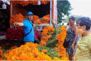 ACAPULCO, GUERRERO, 31OCTUBRE2022.- Personas acuden al mercado central de Acapulco, comprar flores de cempasúchil y terciopelo con las que adornarán los altares de día de muertos. La mayoría de las flores que venden en el puerto provienen de los campos del estado de Puebla y Morelos. FOTO: CARLOS ALBERTO CARBAJAL/CUARTOSCURO.COM