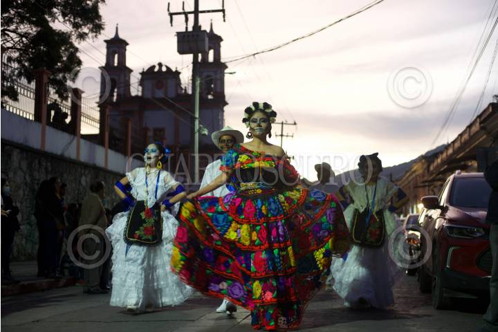 SAN CRISTÓBAL DE LAS CASAS, CHIAPAS, 31OCTUBRE2022.- Cientos de estudiantes de diferentes escuelas de la ciudad, realizaron un desfile disfrazados de catrinas y catrines en las principales calles de la Ciudad. Con disfraces creativos recorrieron el centro entregando dulces y saludos a los espectadores. FOTO: ISABEL MATEOS /CUARTOSCURO.COM